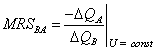 Предельная норма замещения блага A благом B (MRSBA) показывает, насколько можно сократить потребление блага A при увеличении потребления блага B на единицу, не изменяя при этом степень удовлетворенности потребителя: