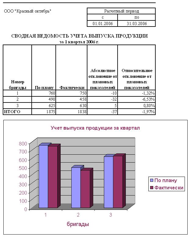 Рис. 15. Ведомость учета выпущенной продукции по месяцам.