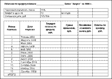 Рис. 13 Шаблон выходной таблицы «Платежи по кредиту клиента банка «Акцепт»