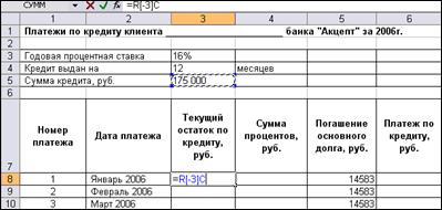 10. Заполнить графу Платеж по кредиту, руб., следующим образом: