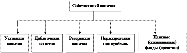 Собственный капитал состоит из уставного, добавочного и резервного капитала, нераспределенной прибыли и целевых (специальных) фондов (рис.1). Коммерческие организации, функционирующие на принципах рыночной экономики, как правило, владеют коллективной или корпоративной собственностью. Собственниками выступают юридические и физические лица, коллектив вкладчиков-пайщиков или корпорация акционеров. Уставный капитал, сложившийся как часть акционерного капитала, наиболее полно отражает все аспекты организационно-правовых основ формирования уставного капитала.