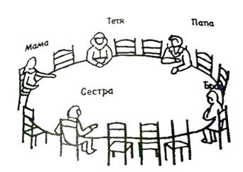 4. А теперь размести несколько человек и себя вокруг этого стола. Обозначь их родственные отношения (мама, папа) или (друг, товарищ, одноклассник)