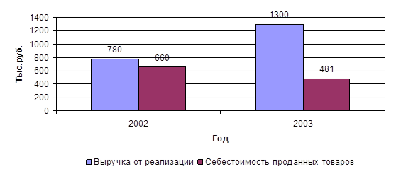 На основании рис. 25 видно, что с 2002 г. наблюдается рост пвыручки от реализации продукции, хотя он и рассматривается и более высокими темпами, чем рост уровня себсетоимости продукции и товаров.