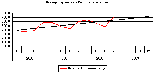 Основная часть всех импортируемых в Россию фруктов и овощей поступает через петербургский и новороссийский порты. Сейчас около 80% фруктов, официально ввозимых в Россию, поступает через петербургский порт (остальные 20% приходятся на порт в Новороссийске). Это связано с достаточно высокой мощностью порта второй столицы и его относительно развитой технологической базой, а также с тем, что Петербург расположен ближе Новороссийска к основным российским рынкам сбыта.