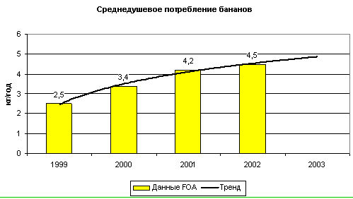 "Банановый бум" объясняется, в первую очередь, тем, что это очень дешевый фрукт: в России его цена, включающая и расходы на транспортировку за тысячи километров, и стоимость погрузочно-разгрузочных работ, и уплату всех таможенных платежей, не превышает 1 доллара. Во-вторых, бананы, что называется, удобны в потреблении: их просто чистить и не обязательно мыть, и это прекрасный вариант быстрого ланча "на ходу", когда нет времени на полноценный обед. Наконец, так сложилось, что петербургским компаниям удалось заключить прямые и довольно выгодные контракты с поставщиками бананов в местах непосредственного произрастания фруктов.