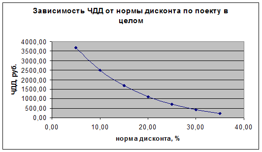 Рис. 1. Зависимость ЧДД от нормы дисконта в целом по проекту