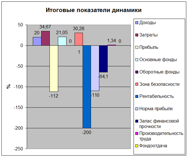 Резюмируя всё вышесказанное, построим диаграмму роста (снижения) основных показателей в отчётном периоде.