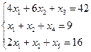 x1=0; x2=0; x3=42; x4=9; x5=16.