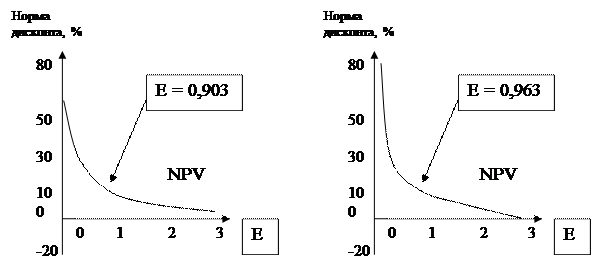Выводы: таким образом, при Е = 0,903 – точка внутренней нормы доходности, IRR > 0, значит и NPV > 0, поэтому проект является выгодным.