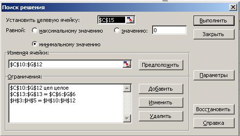 - Установит Неотрицательные значения, так как количество перевозок не может быть отрицательно величиной;
