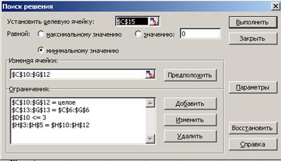 3. Ввод ограничений условий.