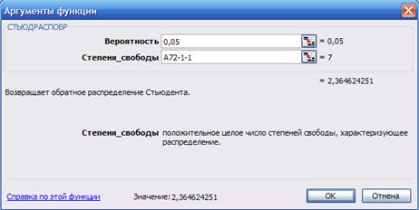 F - значение ( n1 = 1, n2 = 7) |