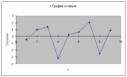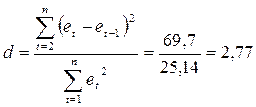 · критерий Дарбина-Уотсона, т.к. d = 2,589 существует отрицательная связь, d` = 4 - d = 4 – 2,589 = 1,411, попадает в табличный интервал.