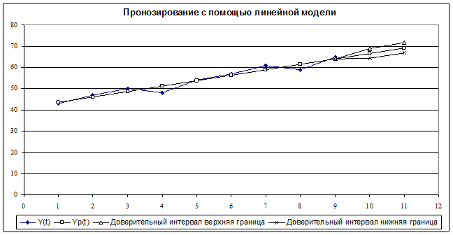 Интервальный прогноз – сопровождение точечного прогноза двусторонними границами, т.е. указание интервала значений, в котором с достаточной долей уверенности можно ожидать появления прогнозируемой величины.