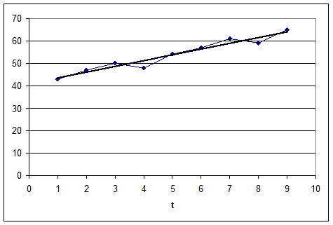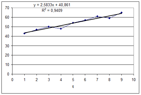 · Уравнение значимо с р=0,95 – это значит, что с вероятностью 95% это уравнение отражает тенденцию развития данного временного ряда.