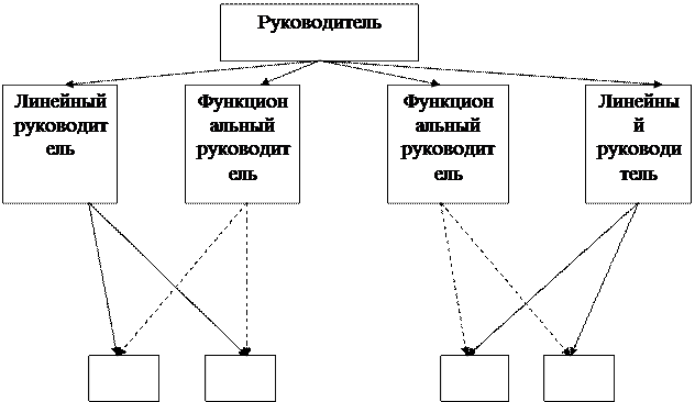 7. Матричная. Это структура, которая получается в результате наложения проектной структуры на функциональную, и предполагает принцип <двойного> подчинения (как функциональному руководителю, так и руководителю проекта).