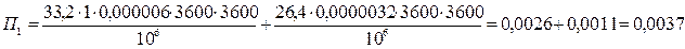mф = 3,234 мг/с; Н = 3 м; V = 0,105 м3/с; ΔТ = 3470 С; F = 1; m = 0,83; n = 2,41 |