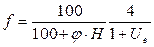 где: Н – геометрическая высота устья источника выброса, м; Uв – среднегодовое значение модуля скорости ветра на уровне флюгера, м/с (или величина опасной скорости ветра на уровне 10 м от земли); φ – поправка на тепловой объем факела выброса в атмосферу, определяется по формуле