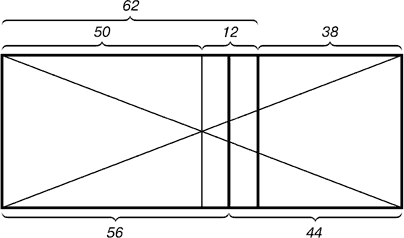 «золотом» соотношении) так, чтобы каждый симметрично пересекался с двумя