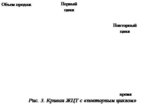 Одним из часто встречающихся вариантов является кривая с повторным циклом (рис.2), вызванным мероприятиями по стимулированию сбыта, модернизации товара и т.п.