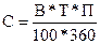 С – сумма дисконта, В- сумма векселя; Т – срок до наступления платежа по векселю (в днях); П- годовая учетная ставка процента; 360 – количество дней в году.[7]