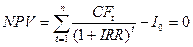Внутренняя норма доходности – наиболее широко используемый критерий эффективности инвестиций. Под внутренней нормой доходности понимают значение ставки дисконтирования r, при котором чистая современная стоимость инвестиционного проекта равна нулю: IRR = r, при котором NPV = f(r) = 0. Таким образом, IRR находится из уравнения: