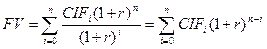 Критерий NPV основан на приведении денежного потока к началу действия проекта, т.е. в его основе заложена операция дисконтирования. Очевидно, что можно воспользоваться и обратной операцией – наращением. В этом случае элементы денежного потока будут приводиться к моменту окончания проекта.