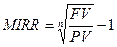 MIRR – это ставка в коэффициенте дисконтирования, уравновешивающая притоки и оттоки средств по проекту. Все денежные потоки доходов приводятся к будущей (конечной) стоимости по средневзвешенной цене капитала, складываются, сумма приводится к настоящей стоимости по ставке внутренней рентабельности; из настоящей стоимости доходов вычитается настоящая стоимость денежных затрат и исчисляется чистая настоящая стоимости проекта, которая сопоставляется с настоящей стоимостью затрат.
