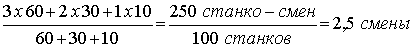 отработанных станко-смен составит: в первой смене 10 + 30 + 60 = 100, во