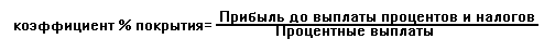 Одним из самых важных коэффициентов при анализе кредитного риска является процентное покрытие. Его суть заключается в сопоставлении процентных выплат компании с суммами ее прибыли, из которых делаются эти выплаты. Этот коэффициент отражает способности компании выполнять свои обязательства по выплате процентов за кредит, Именно в возможности того, что компания не сможет выплатить процент, и заключается опасность при высоком гиринге. Коэффициент процентного покрытия определяется следующим образом:
