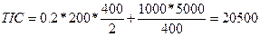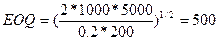 , что выше, чем при размере заказа, равном EOQ. Экономия от разницы цен равна 0,01*200= 2 рубля на