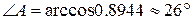 Найдем угол A по теореме косинусов.