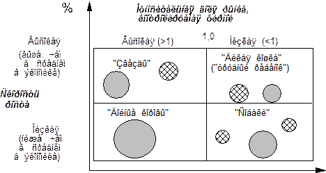 Мы видим, что при помощи матрицы СЗХ фирмы группируются в четыре зоны. Рассмотрим каждую из них.