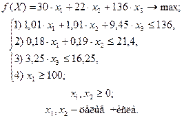 30 х1 + 22 х2 + 136 х3 руб., является целевой функцией задачи, которую необходимо максимизировать. Окончательно целевая функция имеет вид: