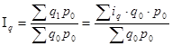 Таким образом, общий индекс физического объема продукции может быть рассчитан как средняя арифметическая из индивидуальных индексов физического объема продукции, взвешенных по стоимости продукции базисного периода. Этот индекс получил название среднего арифметического индекса, тождественного агрегатному.