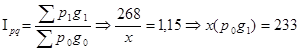Показывает, что цена на товары реализованные в базисном периоде в отчетном не изменилось.