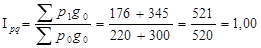 Индекс показывает, что общий выпуск продукции в натуральном выражении увеличился в отчетном периоде по сравнению с базисным на 9,3%.