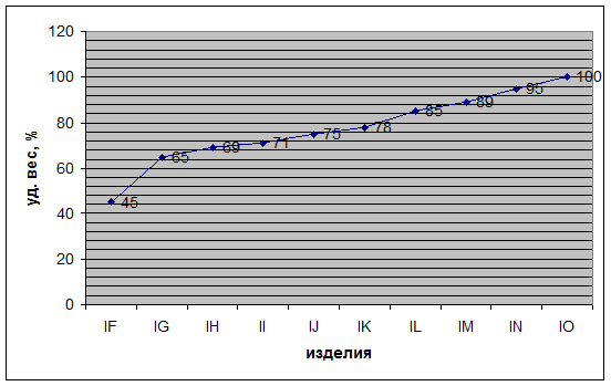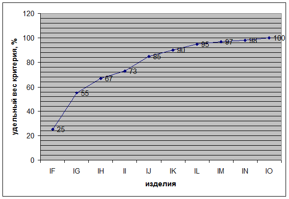 - группа В - 20 % объектов с удельным весом 20 % а по выбранному критерию
