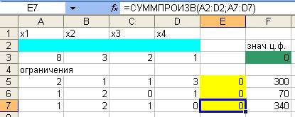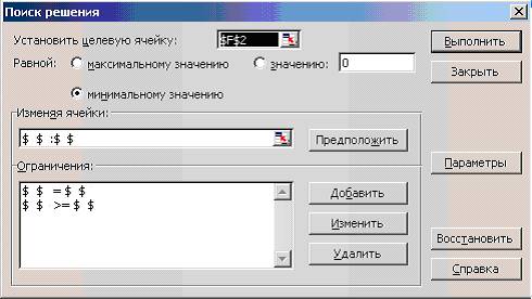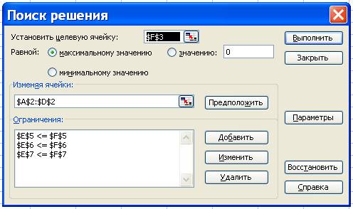 - ввести остальные ограничения задачи, по вышеописанному алгоритму