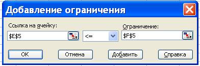 - после введения последнего ограничения кнопка ОК