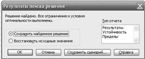 Excel позволяет представить результаты поиска решения в форме отчета. Необходимо проанализировать два отчета: