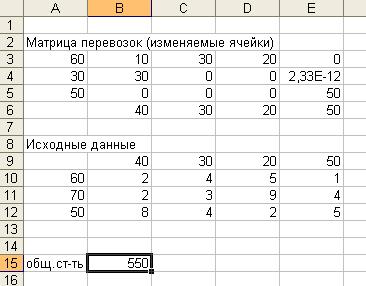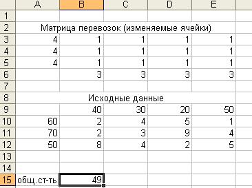 Для решения задачи используем EXCEL. Необходимо создать текстовую форму - таблицу для ввода условий задачи и заполнить ее исходными данными.