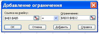 - указатель мыши на кнопку Добавить. На экране вновь диалоговое окно Добавление ограничения
