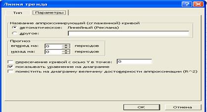 · Вкладка Параметры. Назначаем: показывать уравнение на диаграмме.