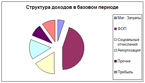 Если рассматривать состав затрат, то можно отметить рост доли затрат на оплату труда на 2,87% (учитывая, что ФОП составляет почти половину всех расходов предприятия этот рост довольно существенный). Также увеличились расходы на амортизацию на 6,67% и в общей структуре они вышли на второе место (в базовом периоде они были на третьем месте). Как положительный момент следует отметить снижение прочих затрат на 16,67%.