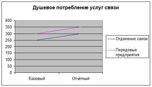 Для анализа хозяйственных результатов необходимо оценить душевой уровень потребления услуг связи и выявить влияние факторов изменения уровня душевого потребления услуг связи. Данные расчётов сведены в таблицу 3.