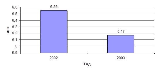 Происходит снижение среднего срока оборота дебиторской задолженности, с 6,55 дней в 2002 г. до 6,17 дней в 2003 г.