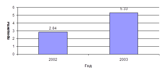 Рентабельность деятельности предприятия также увеличилась с 15% в 2002 г., до 63% в 2003 г.