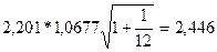 Оценим существенность различий в дисперсиях: F = 0,92/0,86 = 1,07 при табличном значении 5,05. Дисперсии можно признать равными. Тогда оценим существенность расхождения в среднемесячных уровнях прибыли за каждое полугодие по t – критерию Стьюдента: