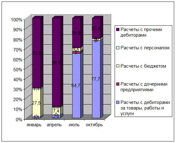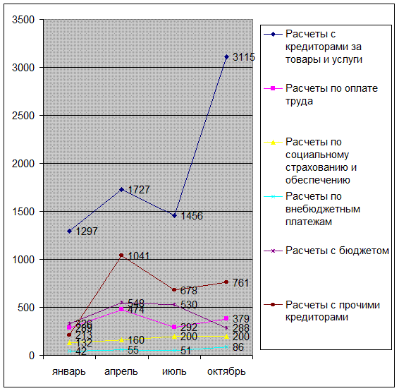 На рисунке 8 отражена динамика структуры расчетов с кредиторами организации в 1997 году.